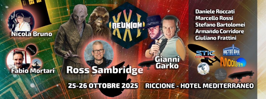 In attesa della StarCon Italia 2026, non perdere la Reunion XXI che si terrà presso l’Hotel Mediterraneo di Riccione dal 25 al 26 ottobre 2025. Durante la Reunion potrai partecipare a giochi e tornei ispirati alle tue serie di fantascienza preferite, assistere a proiezioni, sfilate di costumi, incontrare attori e tanto altro, per trascorrere un weekend all’insegna del divertimento e della passione condivisa.