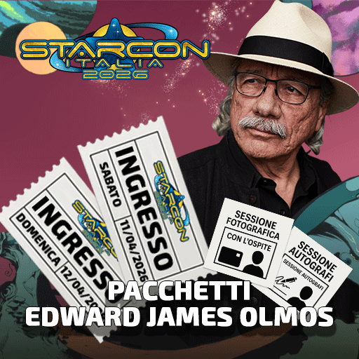 Incontra Edward James Olmos alla StarCon Italia 2026! Acquista il pacchetto Olmos esclusivo: ingresso alla convention, sessione foto e autografo con la star di Blade Runner e Battlestar Galactica.